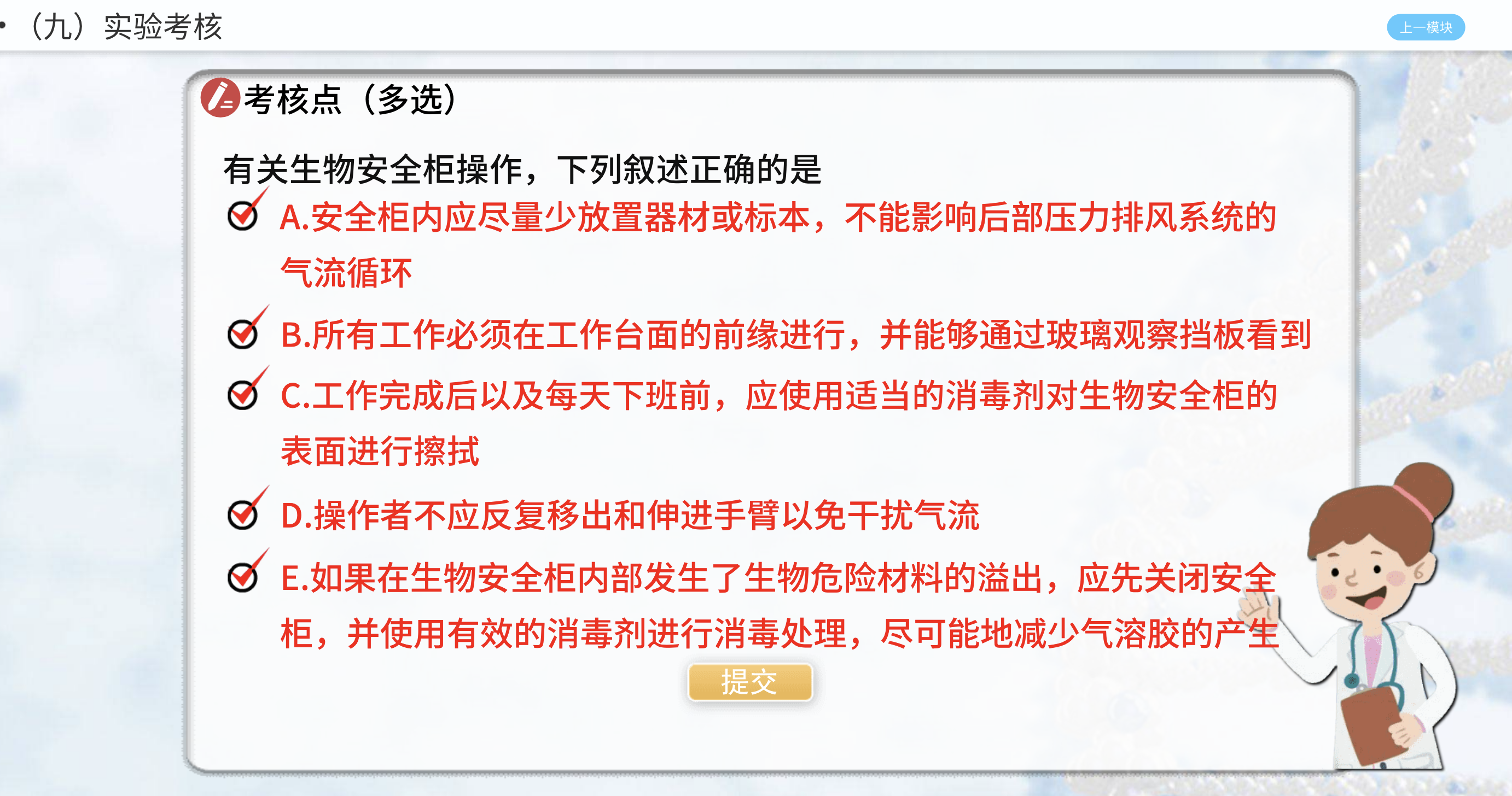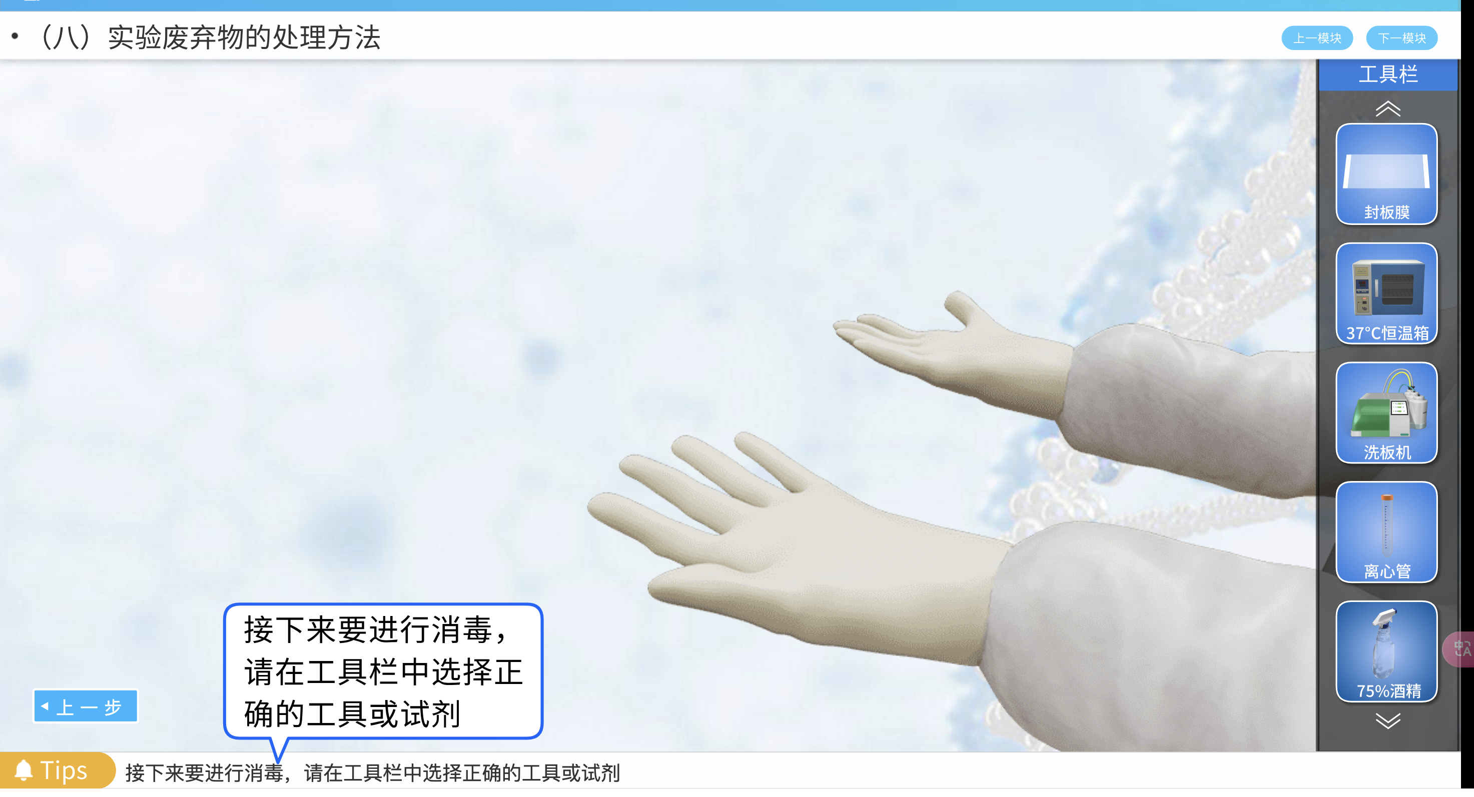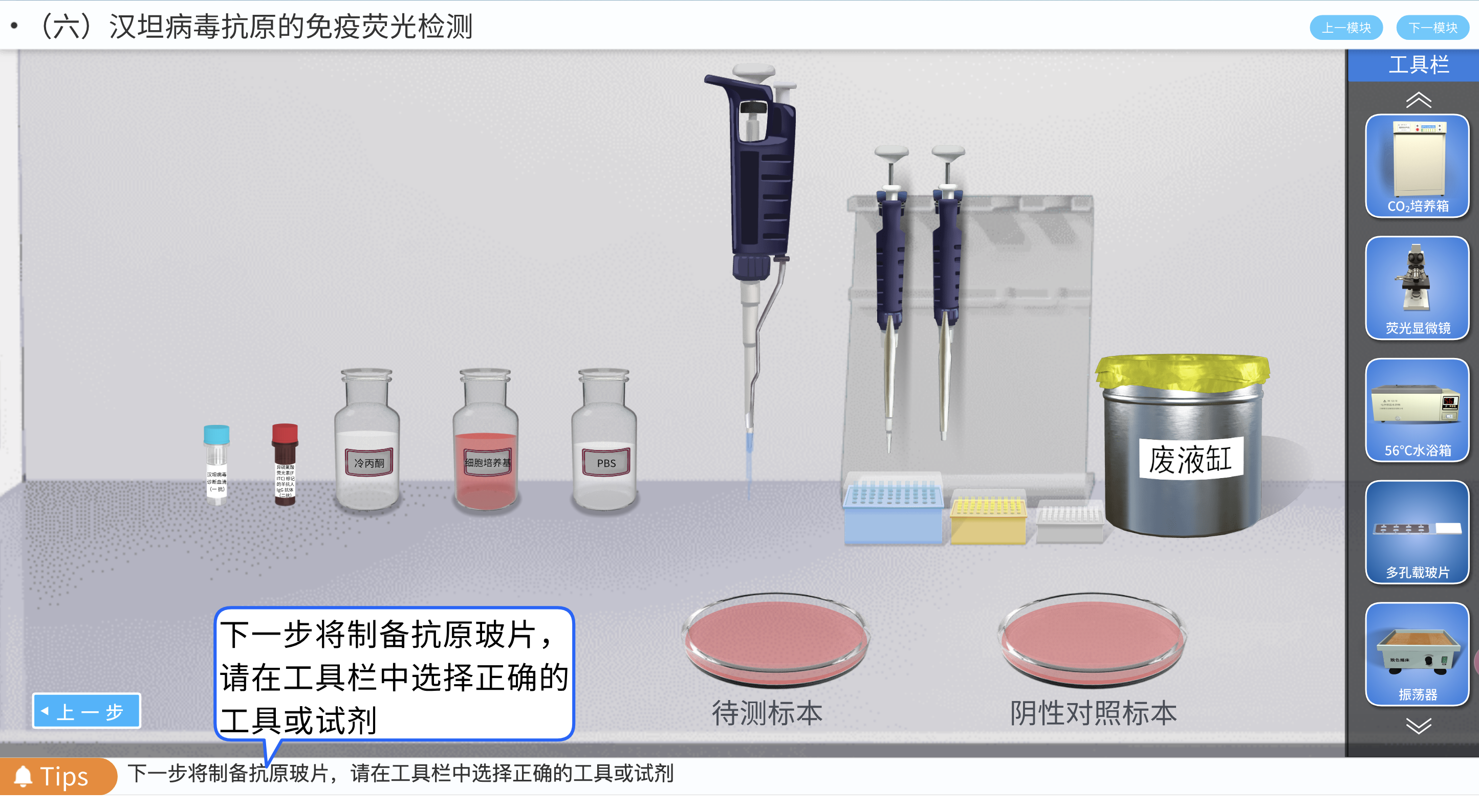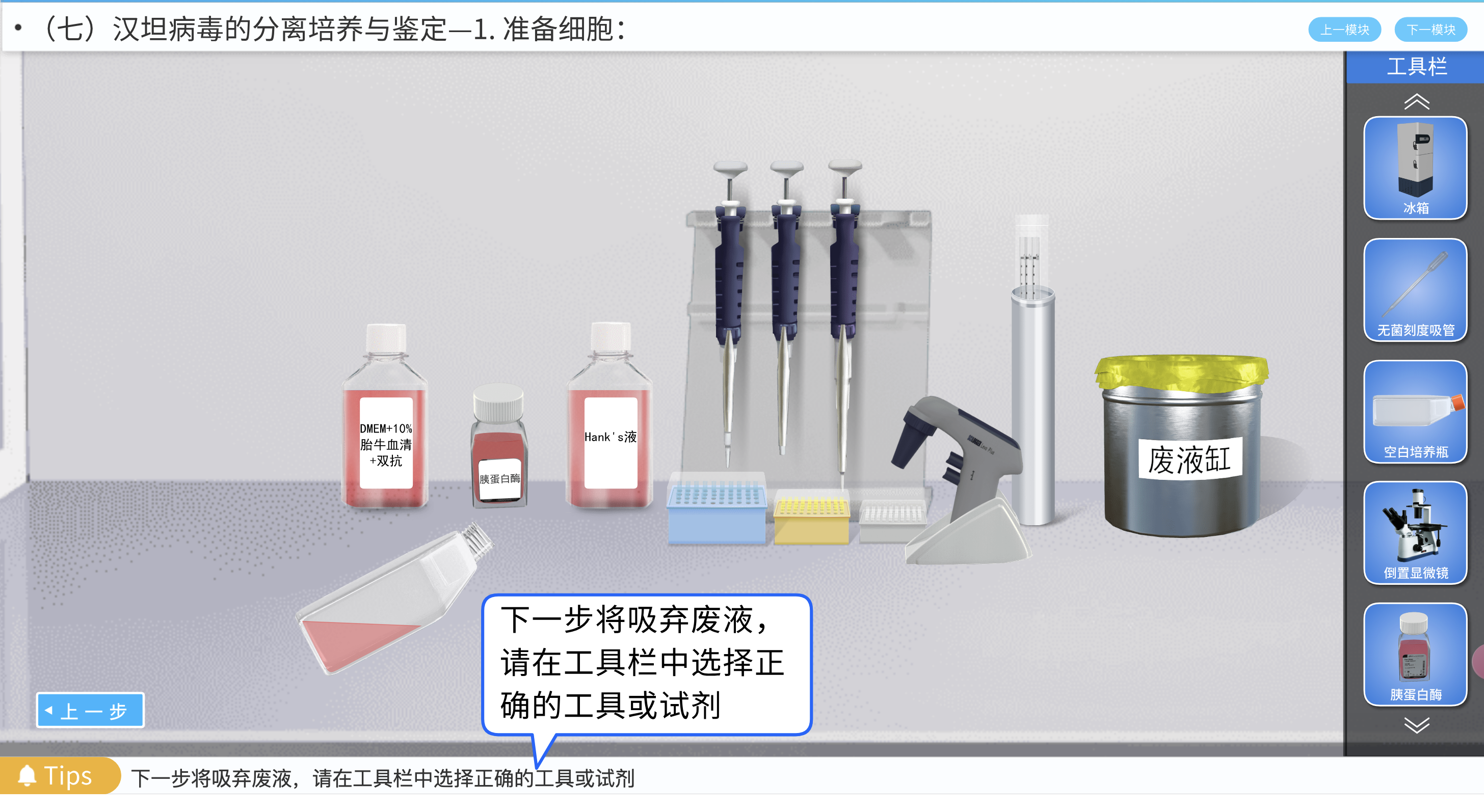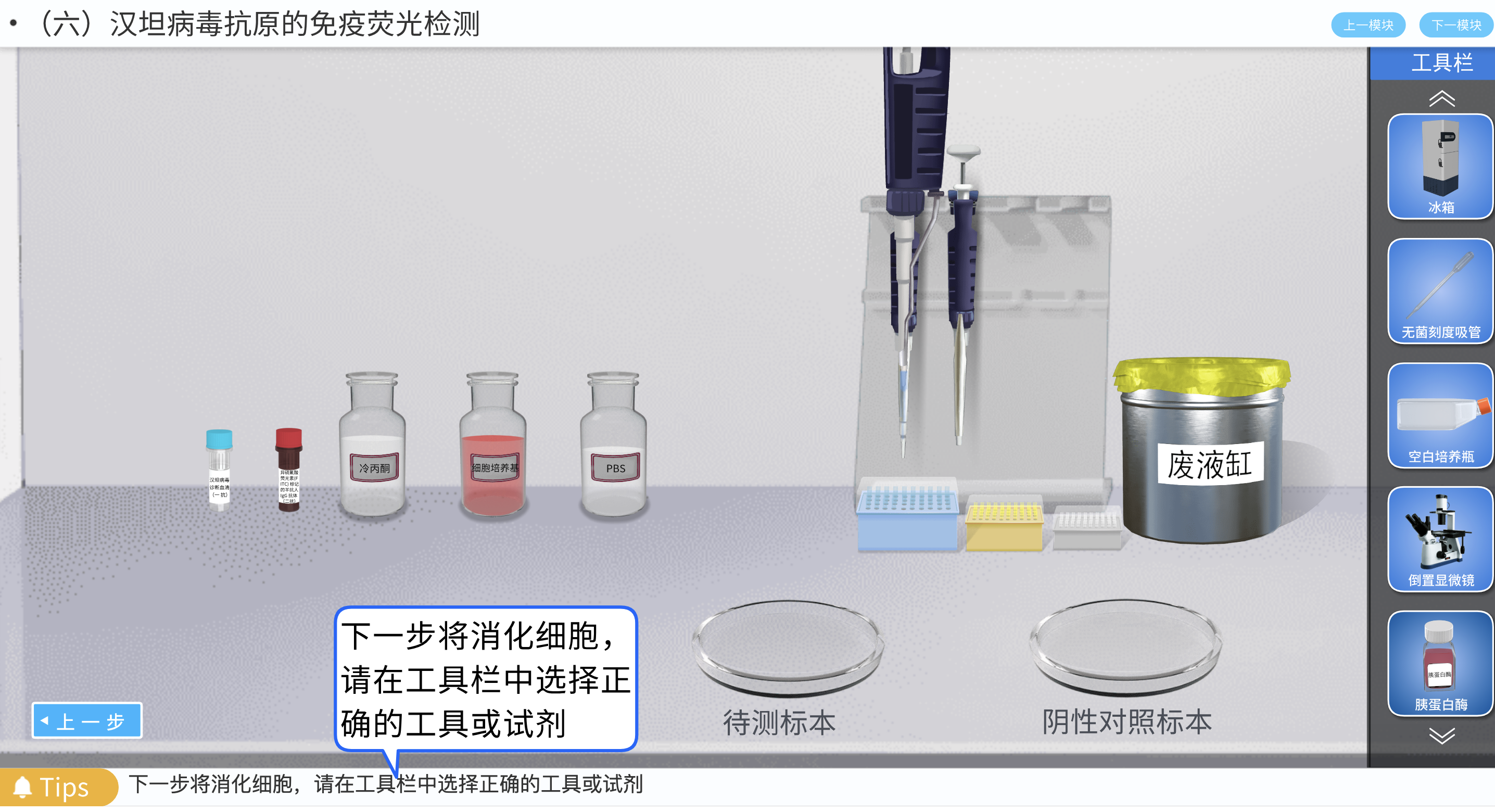 😅2分的微生物虚拟仿真(图片比较多,刷新+等待)https://www.ilab-x.com/details/page?id=12120 这个是3min的课程广告(-) 🦠汉坦病毒-copy from somewhere…实验原理实验原理评分细则实验操作❗不包的。⚠️操作步骤只截取了可能选错扣分的,其它的无脑点击,也可以参考 评分细则 ;最后的选择题分值较大。💡第一次选错是不扣分的,第二次会扣分。剩下一个拖进去【严格按顺序拖动】口罩-帽子-防护服-眼镜-鞋子-手套酒精56 C 水浴箱,工具栏可以翻页封板膜37C恒温箱【服了】洗板机后续照着点,封板+37度恒温箱选离心管胰蛋白酶37C 恒温箱倒置显微镜【not 荧光】多孔载波片冰箱湿盒至于37度恒温箱振荡器湿盒至于37度恒温箱 【梅开二度】振荡器【梅开二度】荧光显微镜无菌刻度吸管37度恒温箱倒置显微镜空白培养瓶CO2 培养箱酒精无菌刻度吸管孵育-CO2培养箱倒置显微镜酒精传播途径-全选B-不是显性感染这个是选错的这个是答案:(