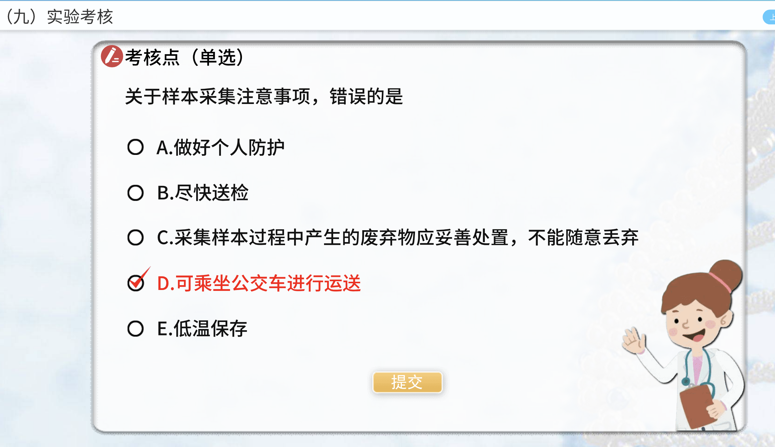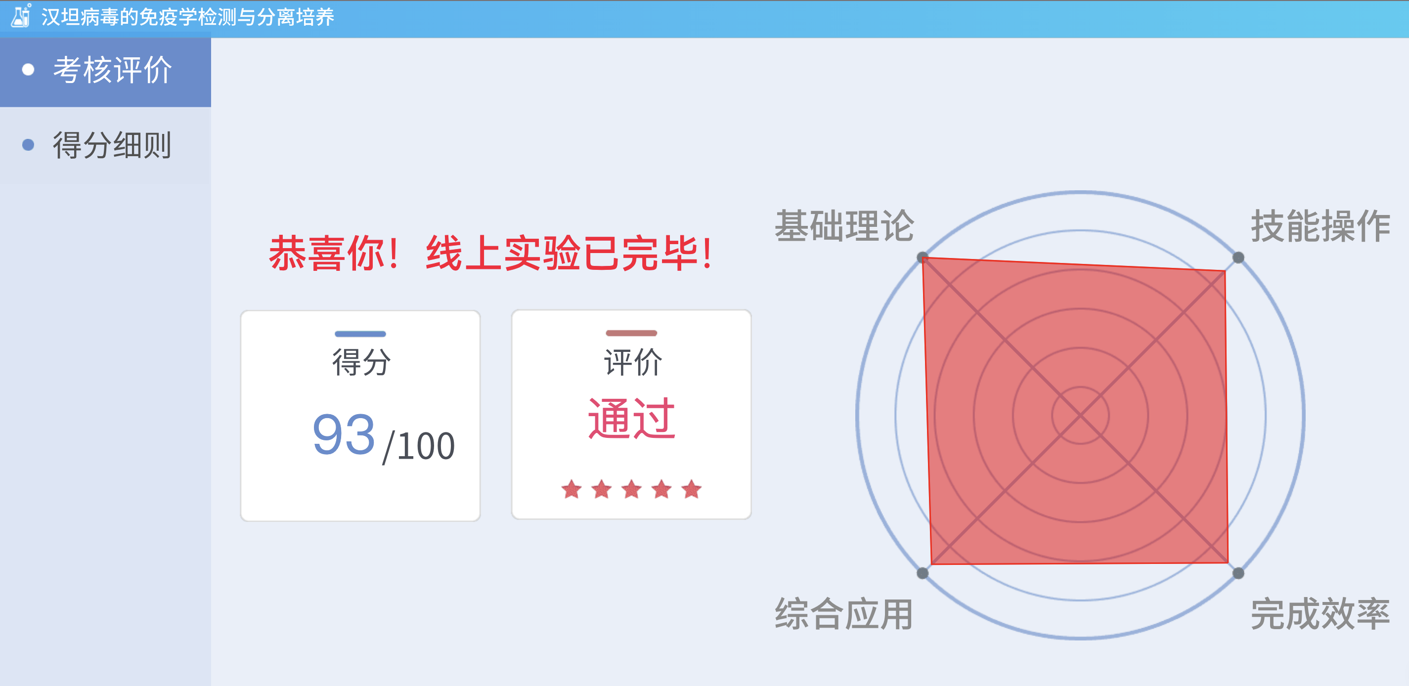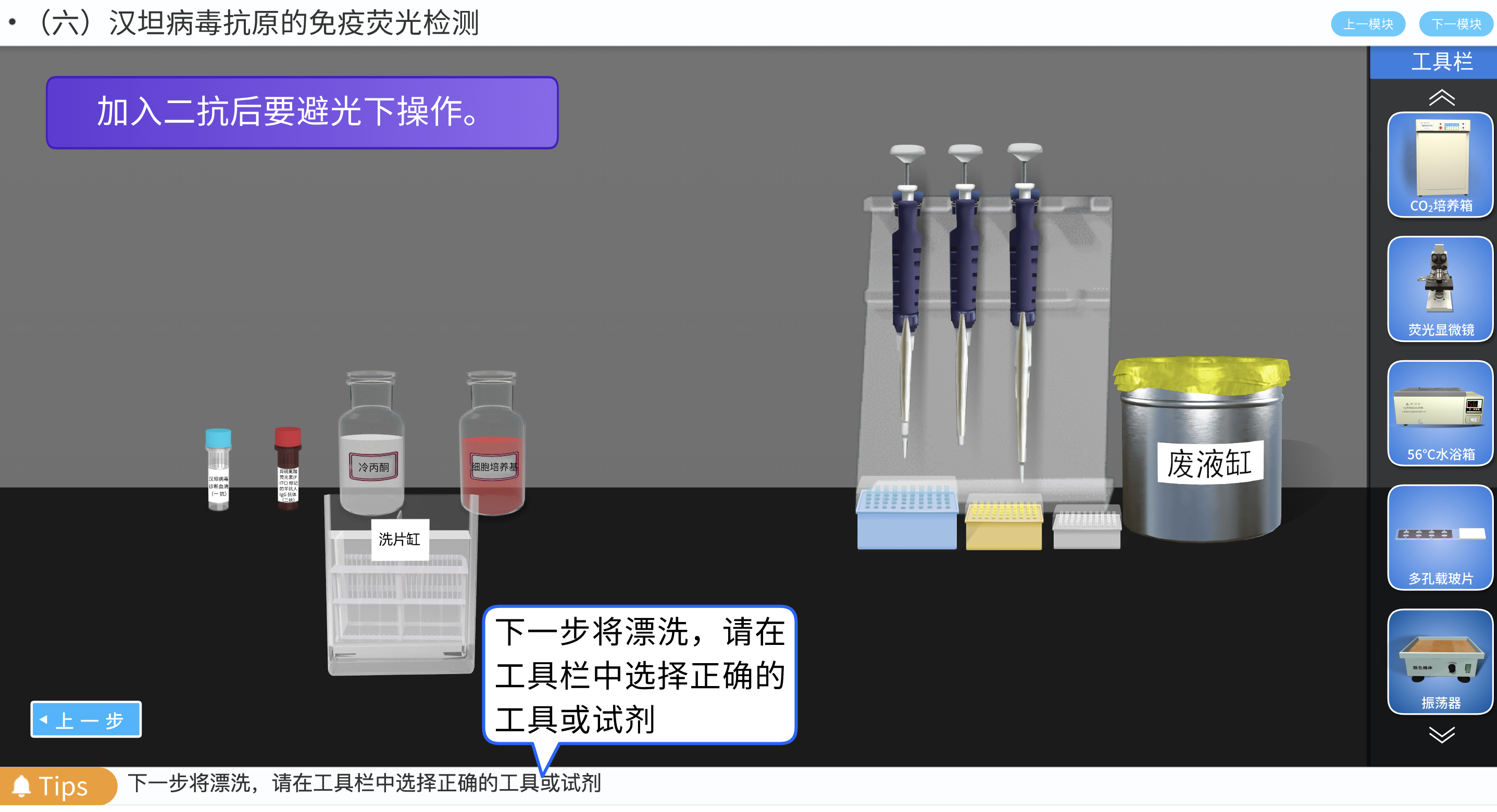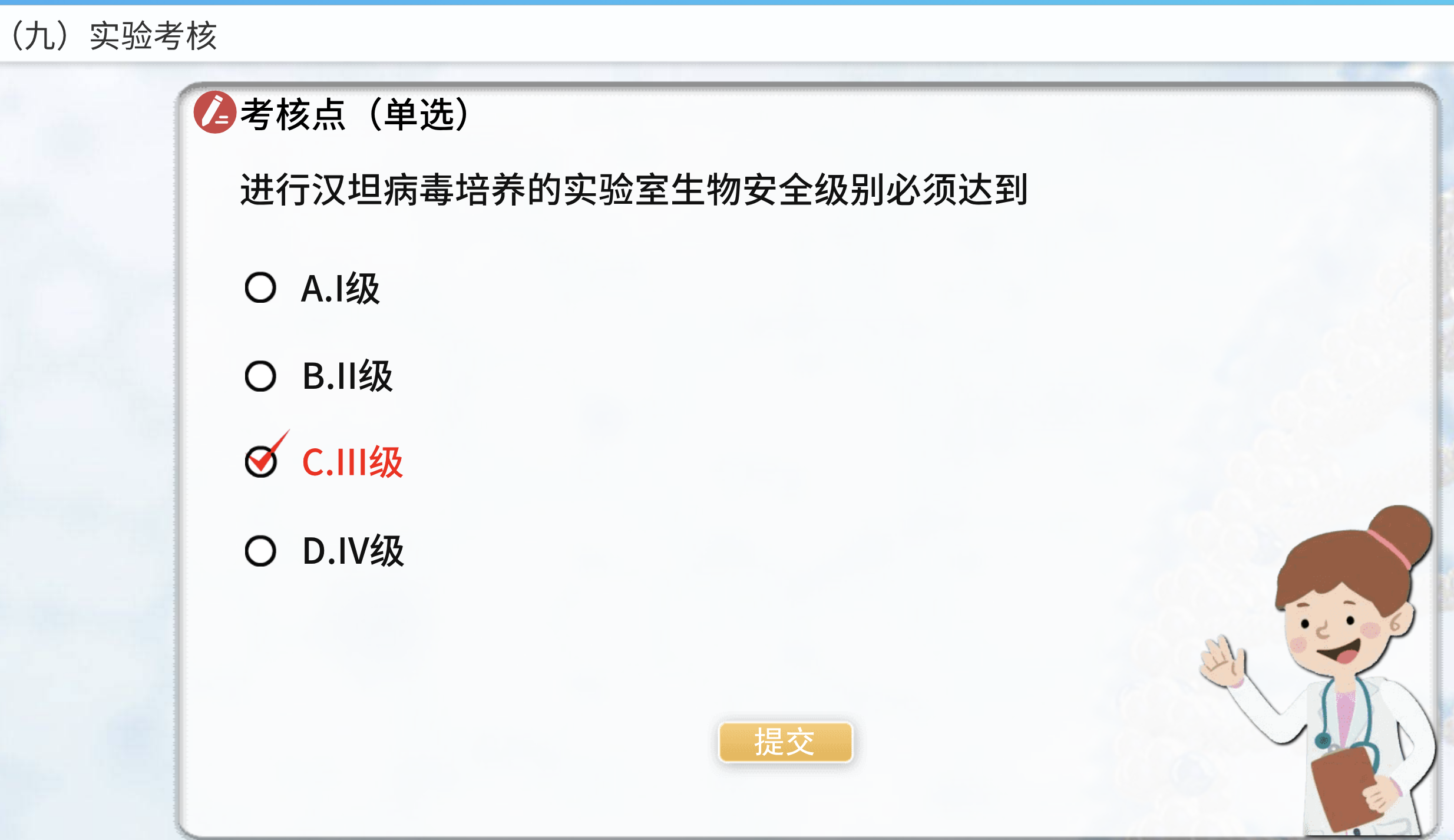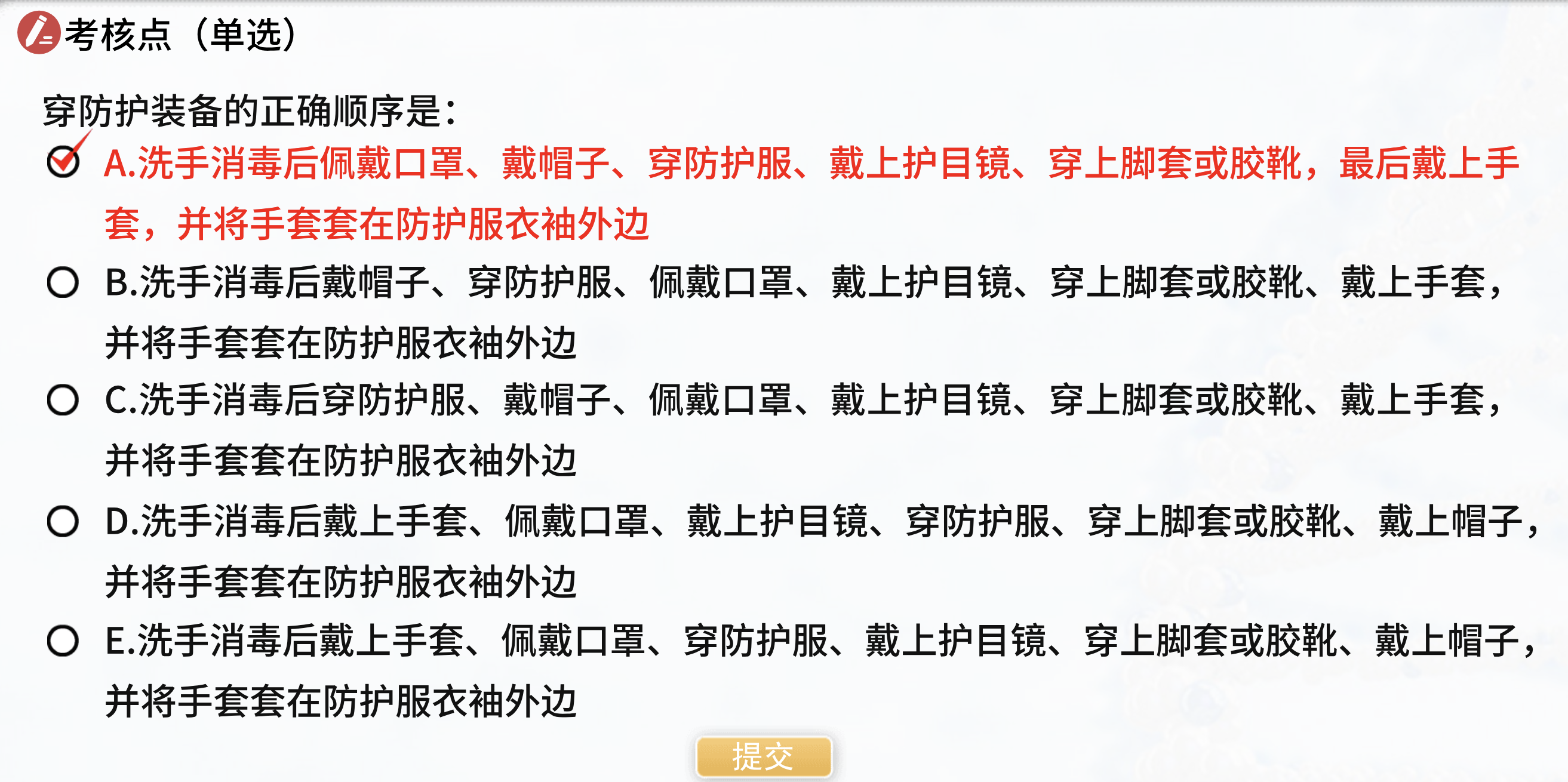 😅2分的微生物虚拟仿真(图片比较多,刷新+等待)https://www.ilab-x.com/details/page?id=12120 这个是3min的课程广告(-) 🦠汉坦病毒-copy from somewhere…实验原理实验原理评分细则实验操作❗不包的。⚠️操作步骤只截取了可能选错扣分的,其它的无脑点击,也可以参考 评分细则 ;最后的选择题分值较大。💡第一次选错是不扣分的,第二次会扣分。剩下一个拖进去【严格按顺序拖动】口罩-帽子-防护服-眼镜-鞋子-手套酒精56 C 水浴箱,工具栏可以翻页封板膜37C恒温箱【服了】洗板机后续照着点,封板+37度恒温箱选离心管胰蛋白酶37C 恒温箱倒置显微镜【not 荧光】多孔载波片冰箱湿盒至于37度恒温箱振荡器湿盒至于37度恒温箱 【梅开二度】振荡器【梅开二度】荧光显微镜无菌刻度吸管37度恒温箱倒置显微镜空白培养瓶CO2 培养箱酒精无菌刻度吸管孵育-CO2培养箱倒置显微镜酒精传播途径-全选B-不是显性感染这个是选错的这个是答案:(