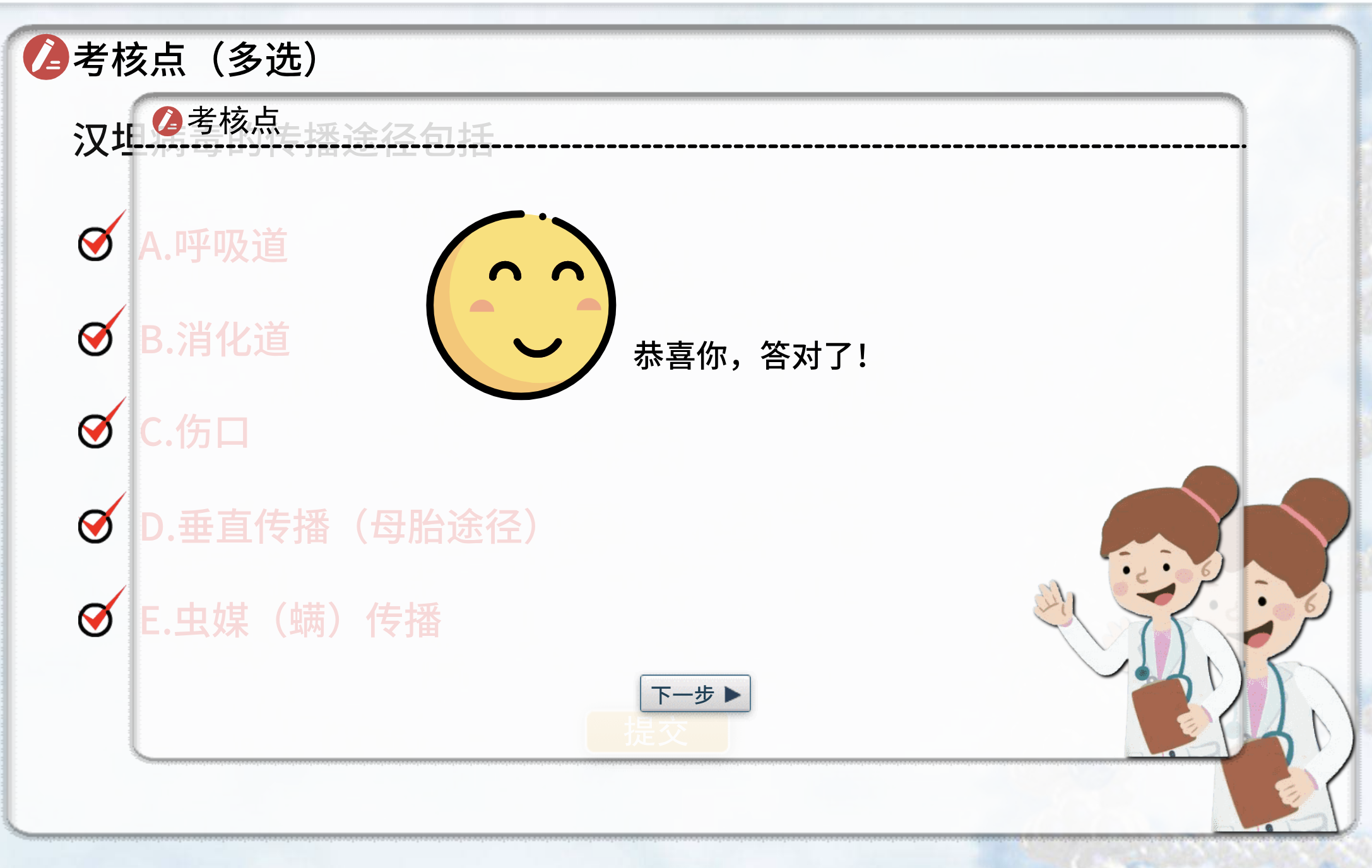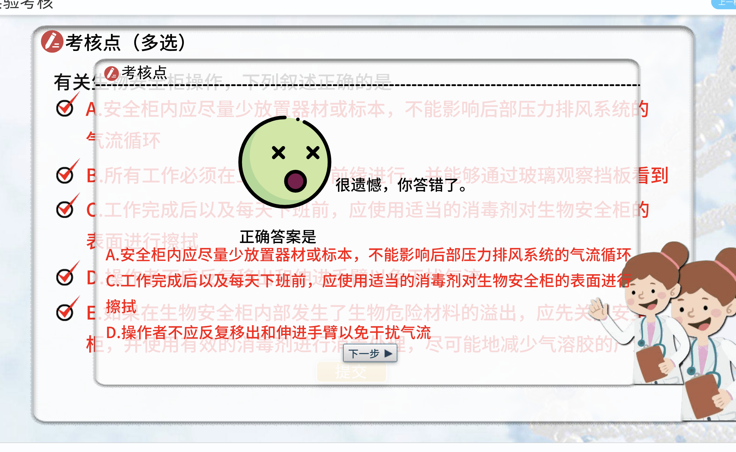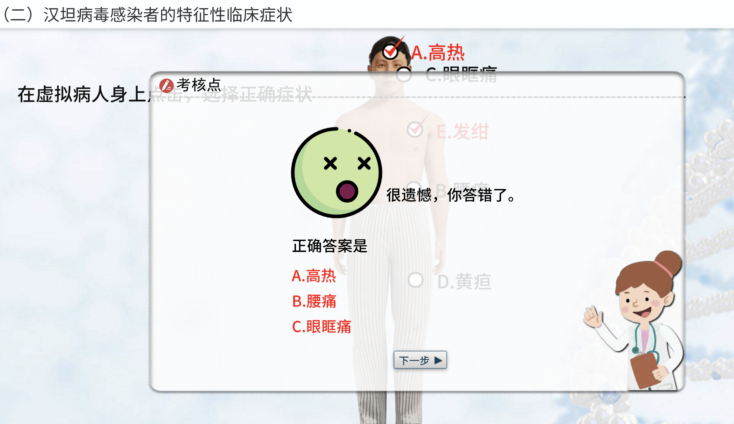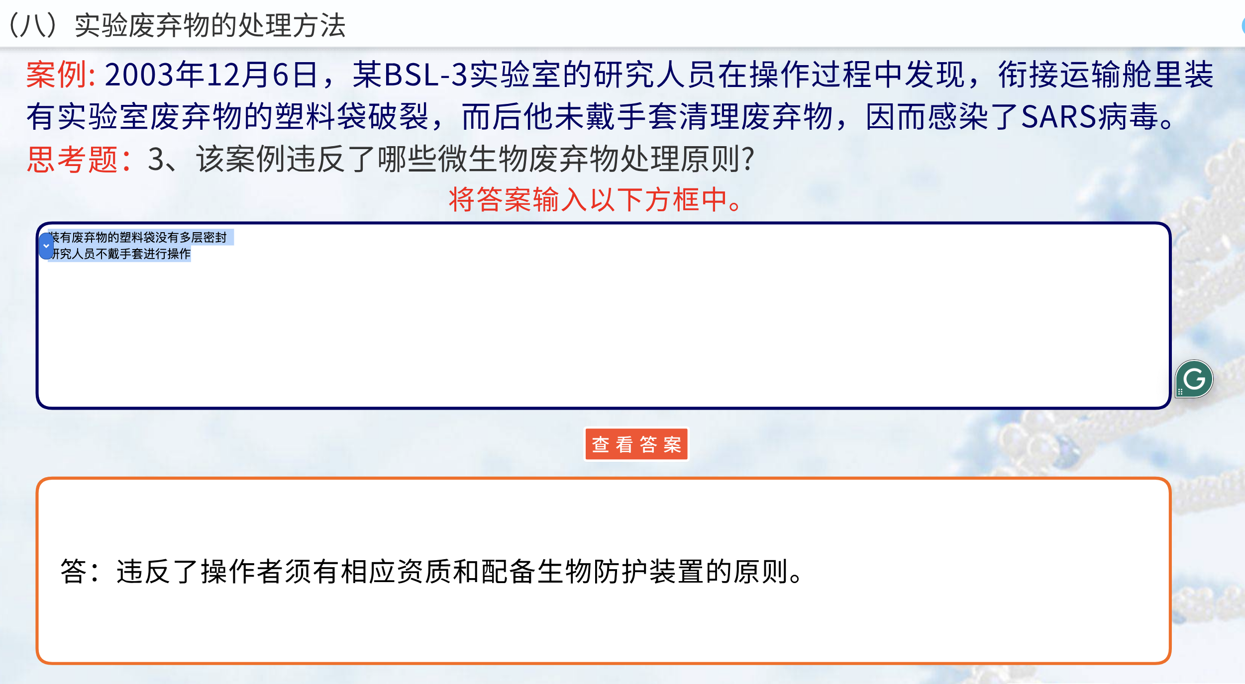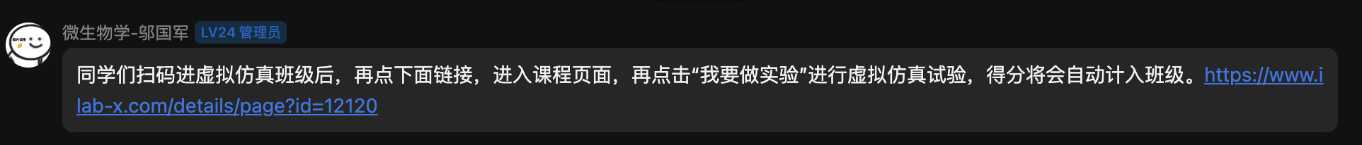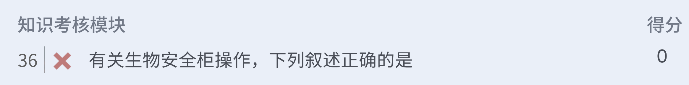 😅2分的微生物虚拟仿真(图片比较多,刷新+等待)https://www.ilab-x.com/details/page?id=12120 这个是3min的课程广告(-) 🦠汉坦病毒-copy from somewhere…实验原理实验原理评分细则实验操作❗不包的。⚠️操作步骤只截取了可能选错扣分的,其它的无脑点击,也可以参考 评分细则 ;最后的选择题分值较大。💡第一次选错是不扣分的,第二次会扣分。剩下一个拖进去【严格按顺序拖动】口罩-帽子-防护服-眼镜-鞋子-手套酒精56 C 水浴箱,工具栏可以翻页封板膜37C恒温箱【服了】洗板机后续照着点,封板+37度恒温箱选离心管胰蛋白酶37C 恒温箱倒置显微镜【not 荧光】多孔载波片冰箱湿盒至于37度恒温箱振荡器湿盒至于37度恒温箱 【梅开二度】振荡器【梅开二度】荧光显微镜无菌刻度吸管37度恒温箱倒置显微镜空白培养瓶CO2 培养箱酒精无菌刻度吸管孵育-CO2培养箱倒置显微镜酒精传播途径-全选B-不是显性感染这个是选错的这个是答案:(